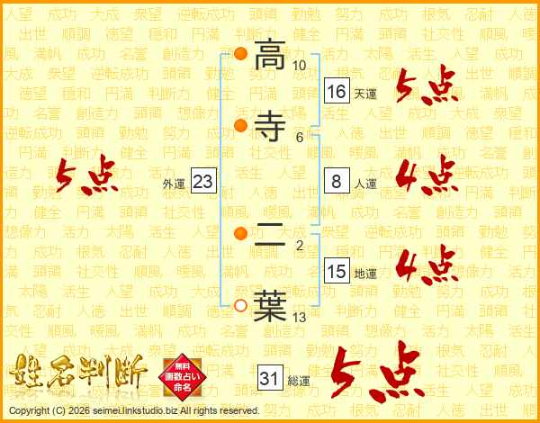 高寺二葉さんの総運は31画の5点!