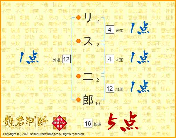 リ(2画)ス(2画) 二(2画)郎(10画)