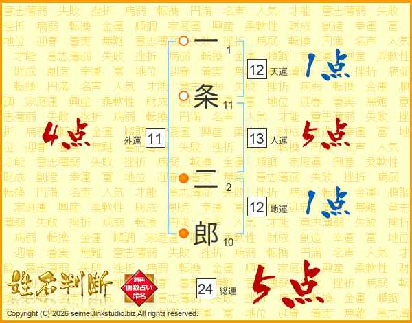 一条二郎さんの総運は24画の5点!