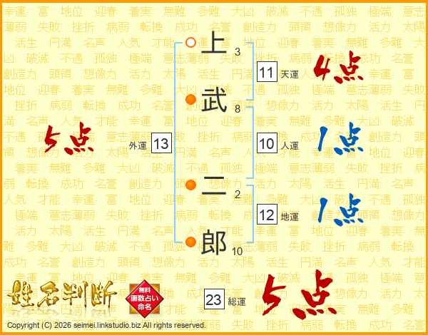 上武二郎さんの天運は11画の4点!
