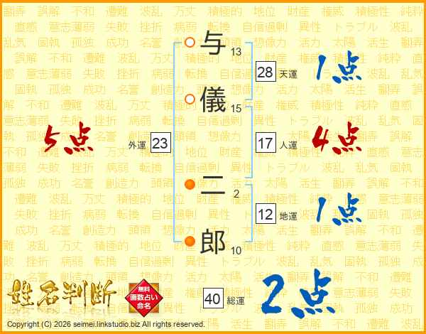 与儀二郎さんの天運は28画の1点!