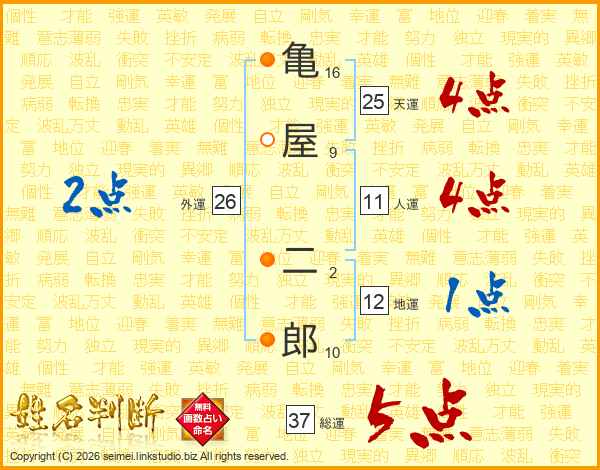 亀屋二郎さんの総運は37画の5点!