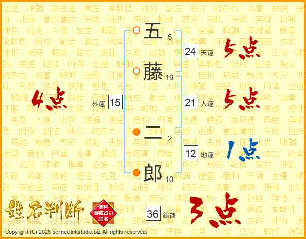 五藤二郎さんの総運は36画の3点!