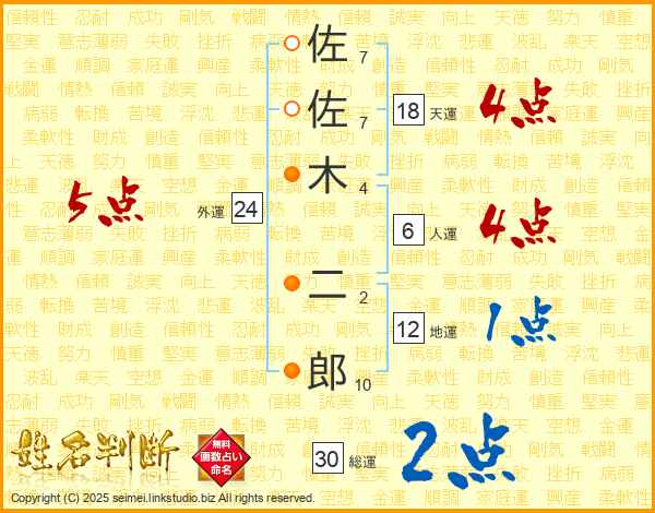 佐(7画)佐(7画)木(4画) 二(2画)郎(10画)