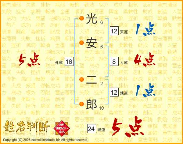 光安二郎さんの総運は24画の5点!