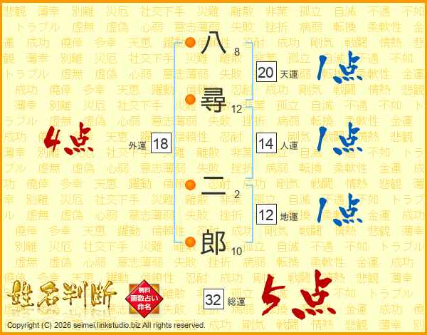 八尋二郎さんの総運は32画の5点!