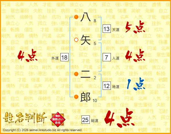 八矢二郎さんの総運は25画の4点!