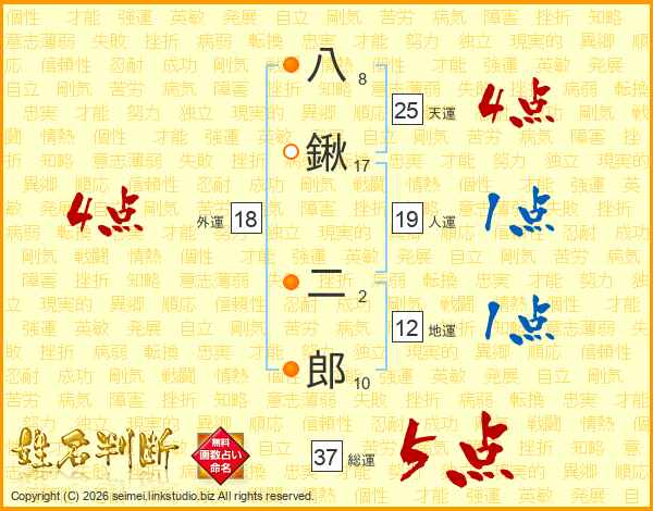 八鍬二郎さんの総運は37画の5点!
