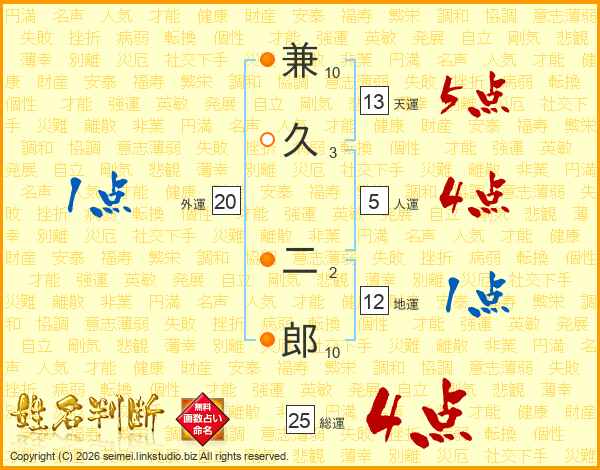 兼久二郎さんの天運は13画の5点!