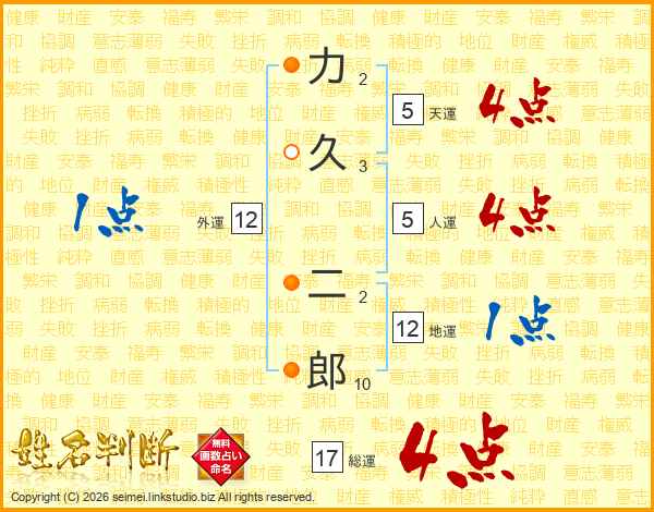 力久二郎さんの総運は17画の4点!