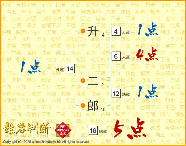 升二郎さんの総運は16画の5点!