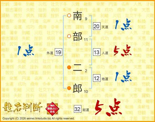 南部二郎さんの総運は32画の5点!