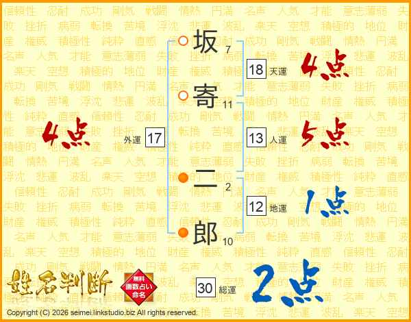 坂寄二郎さんの天運は18画の4点!