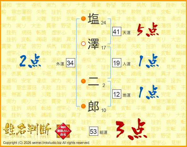塩(24画)澤(17画) 二(2画)郎(10画)
