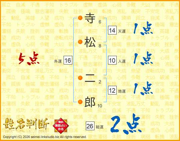 寺松二郎さんの天運は14画の1点!