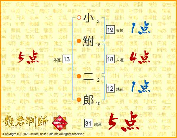 小鮒二郎さんの総運は31画の5点!