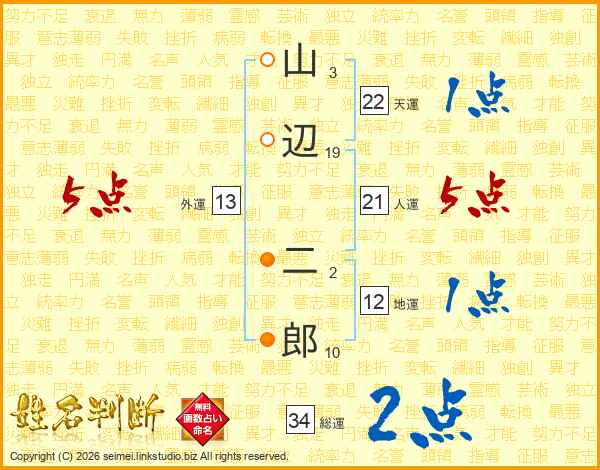 山辺二郎さんの総運は34画の2点!