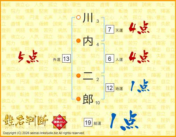川内二郎さんの総運は19画の1点!
