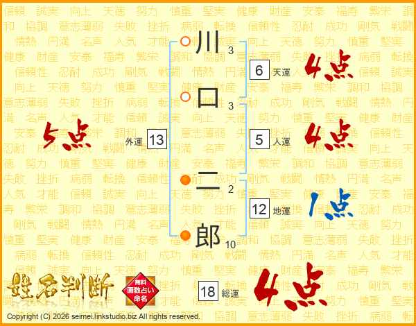 川口二郎さんの総運は18画の4点!