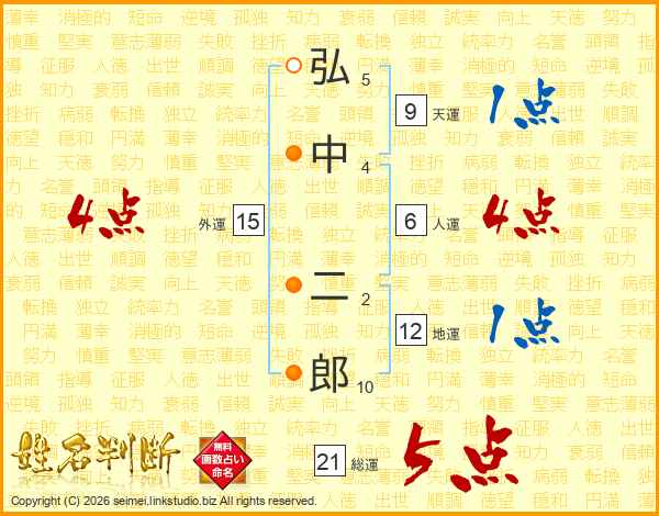 弘中二郎さんの総運は21画の5点!
