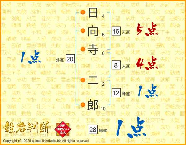 日向寺二郎さんの総運は28画の1点!