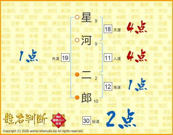 星河二郎さんの総運は30画の2点!