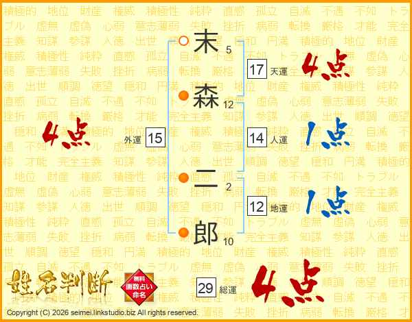 末森二郎さんの総運は29画の4点!