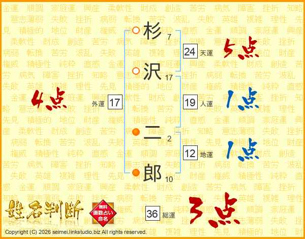 杉沢二郎さんの総運は36画の3点!