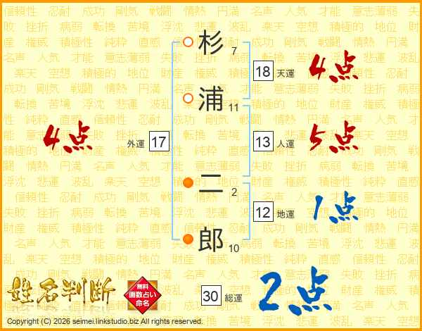 杉浦二郎さんの天運は18画の4点!