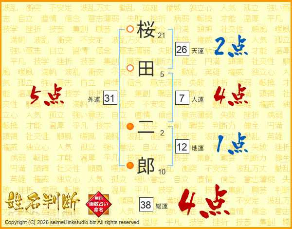桜田二郎さんの総運は38画の4点!