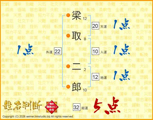 梁取二郎さんの総運は32画の5点!