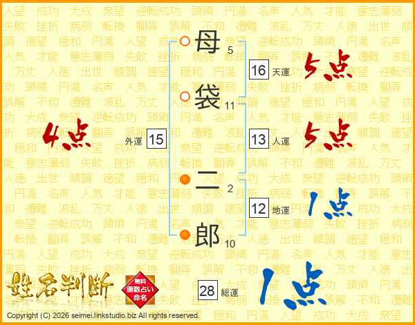 母袋二郎さんの総運は28画の1点!