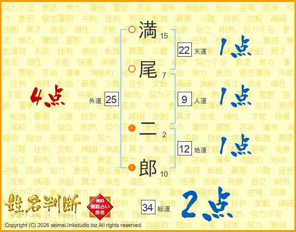 満尾二郎さんの総運は34画の2点!
