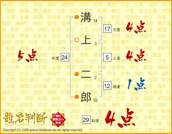 溝上二郎さんの総運は29画の4点!