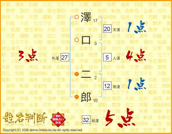 澤口二郎さんの総運は32画の5点!