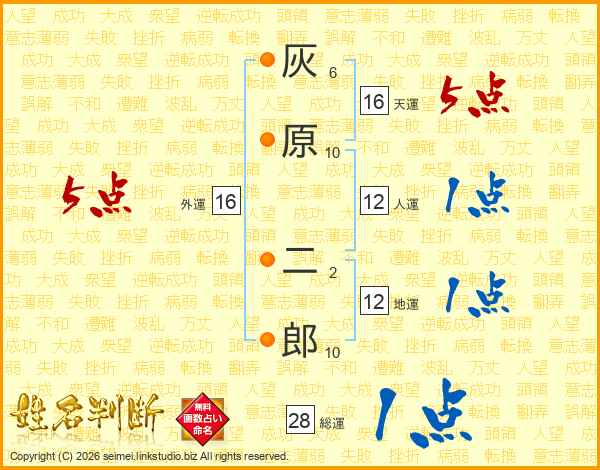 灰原二郎さんの総運は28画の1点!
