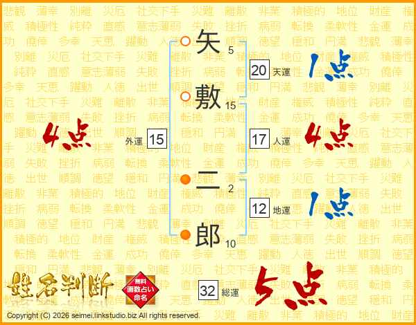 矢敷二郎さんの総運は32画の5点!