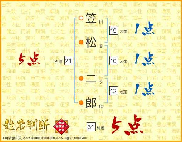 笠松二郎さんの総運は31画の5点!
