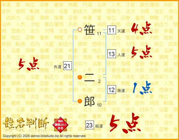 笹二郎さんの天運は11画の4点!