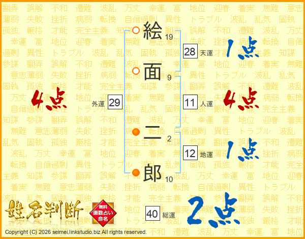 絵面二郎さんの人運は11画の4点!