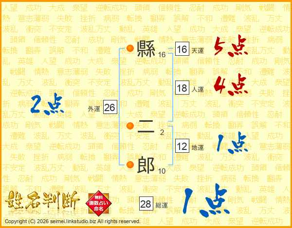 縣二郎さんの総運は28画の1点!