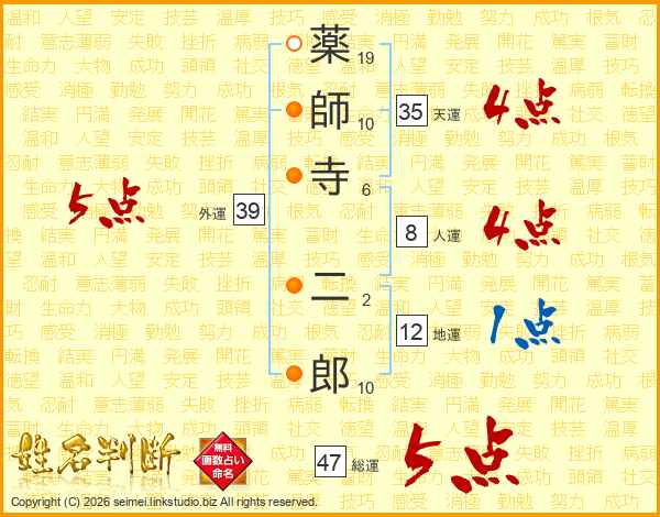 薬師寺二郎さんの外運は39画の5点!