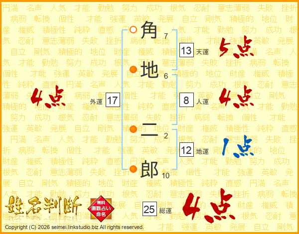 角地二郎さんの総運は25画の4点!