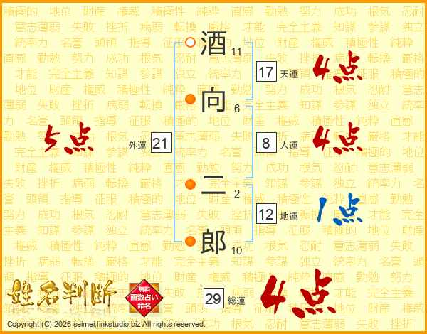 酒向二郎さんの総運は29画の4点!