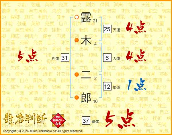 露木二郎さんの総運は37画の5点!