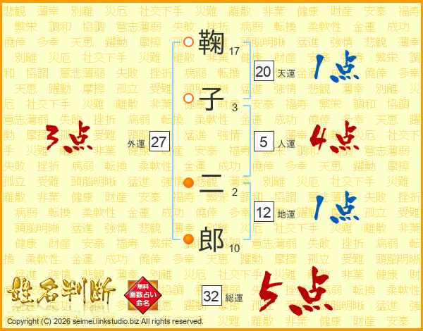 鞠(17画)子(3画) 二(2画)郎(10画)