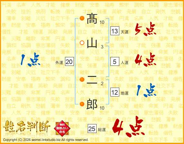 髙山二郎さんの天運は13画の5点!