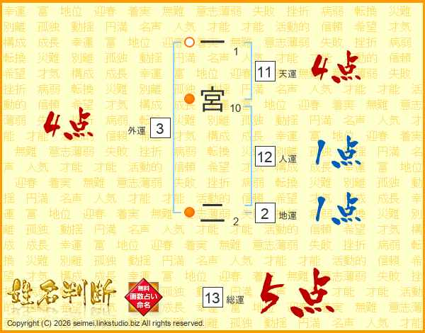 一宮二さんの天運は11画の4点!