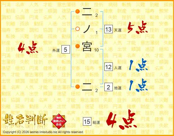二ノ宮二さんの総運は15画の4点!