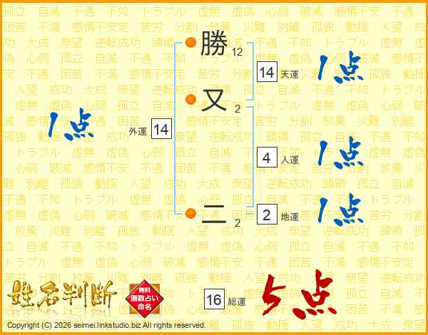 勝又二さんの総運は16画の5点!